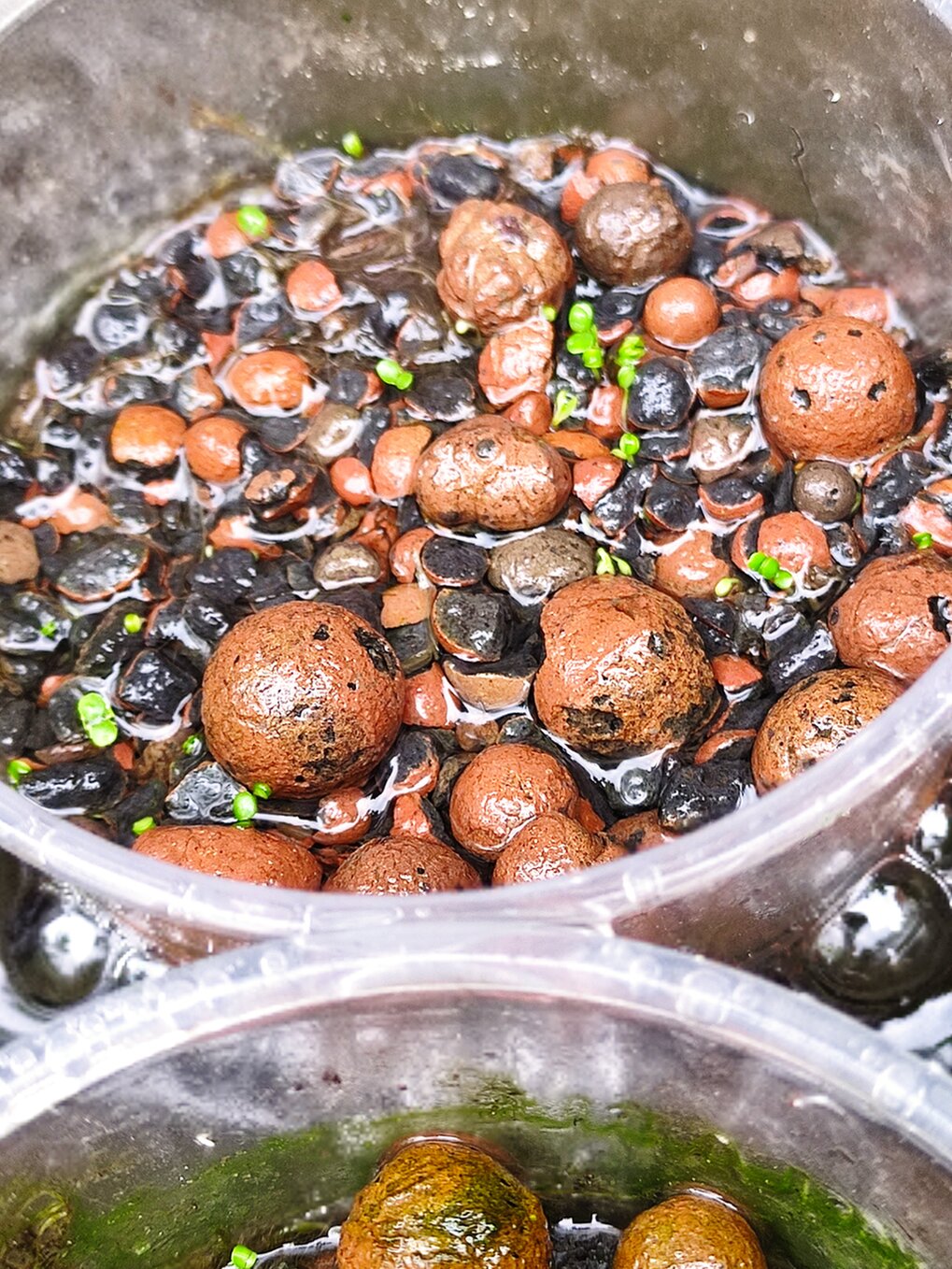 Steht eher halbschattig und im fließenden Wasser. Ab und zu wird etwas gedüngt.