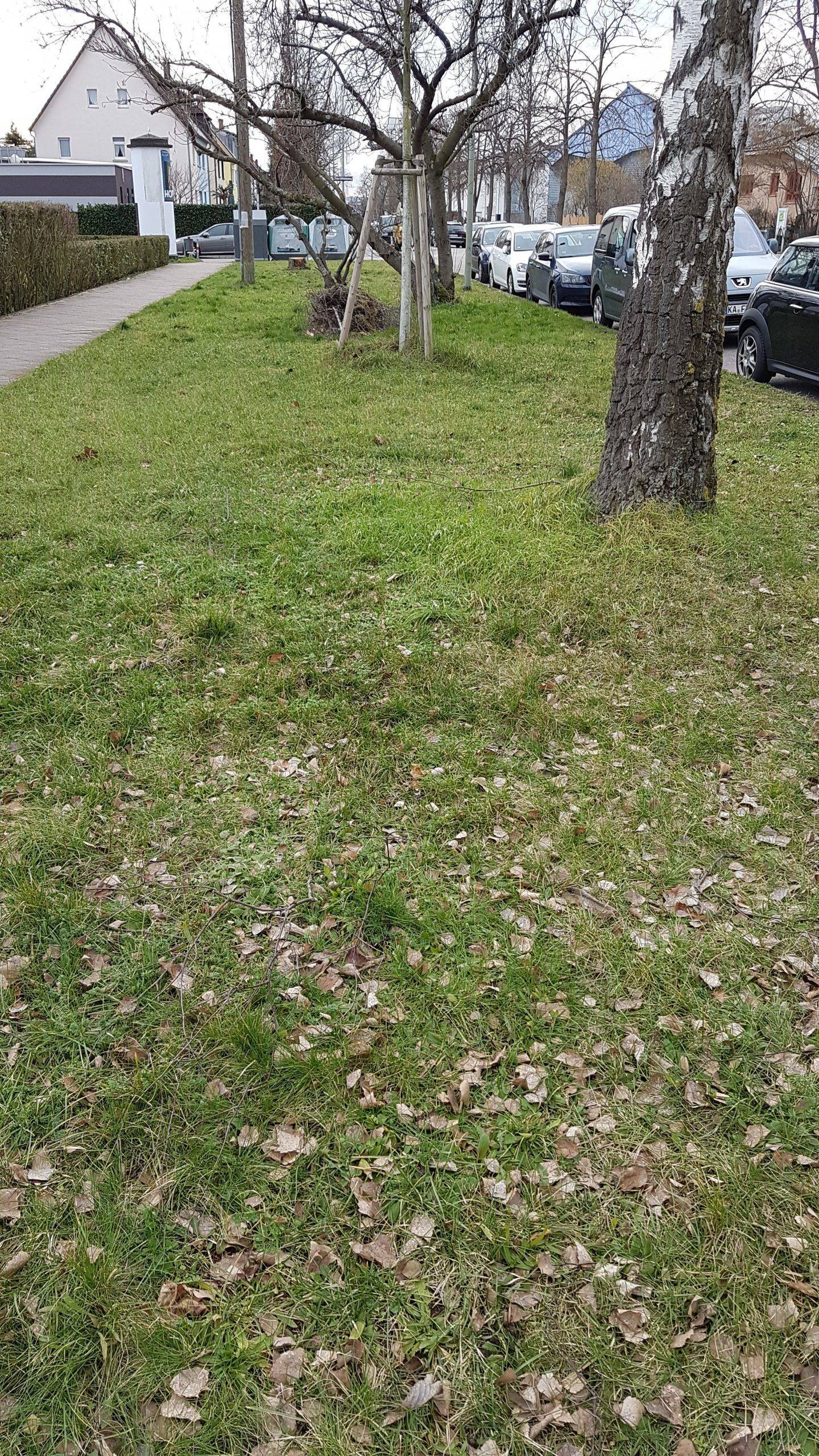 Vergrößerte Wiese mit Laub-Zweige-Haufen