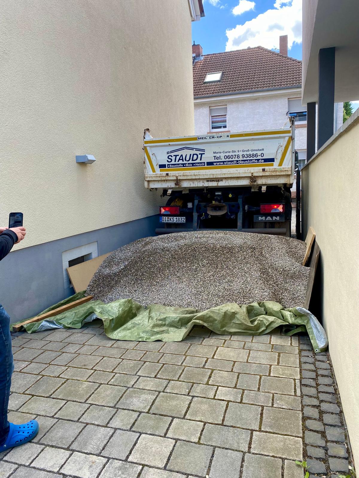 Wir haben einen Bigbag voll mit Kies behalten, den anderen Teil hat der Nachbar genommen.