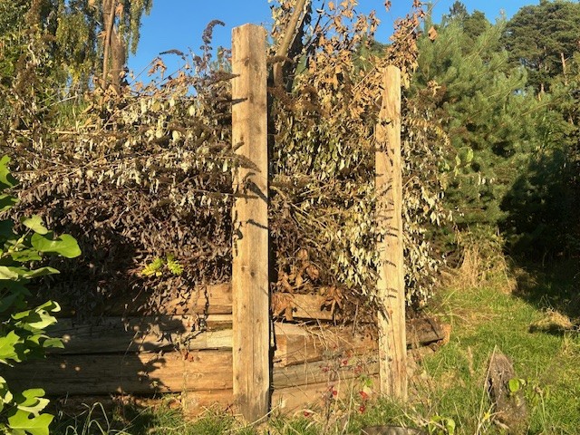 Auch da habe ich gleich eine Totholzhecke, 10 m lang und 2 m hoch, angelegt.