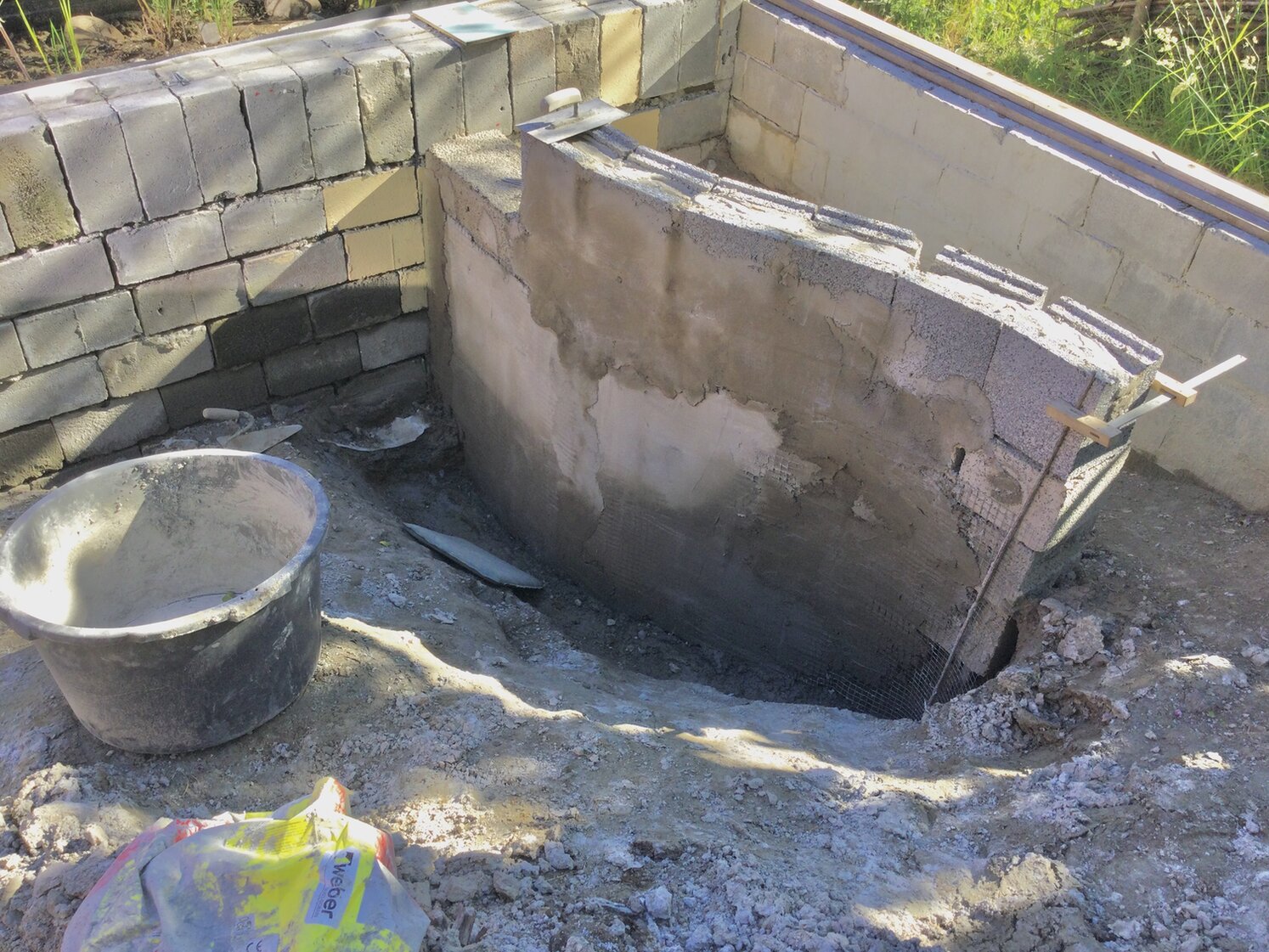 Heute habe ich Mauer- und Verputzaufgaben fertig gemacht. Montag hoffe beim Verleihzentrum den Bagger für nächstes Wochenende reservieren zu können. Mit anderen Worten: jetzt wir es Ernst.