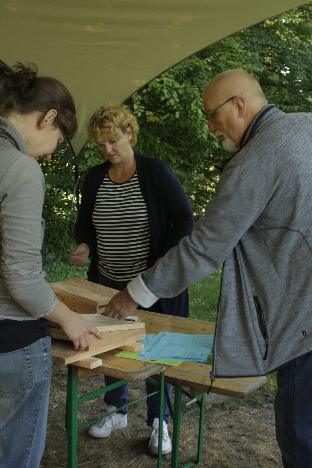 Fledermauskasten bauen unter dem Sonnensegel im Burgpark.