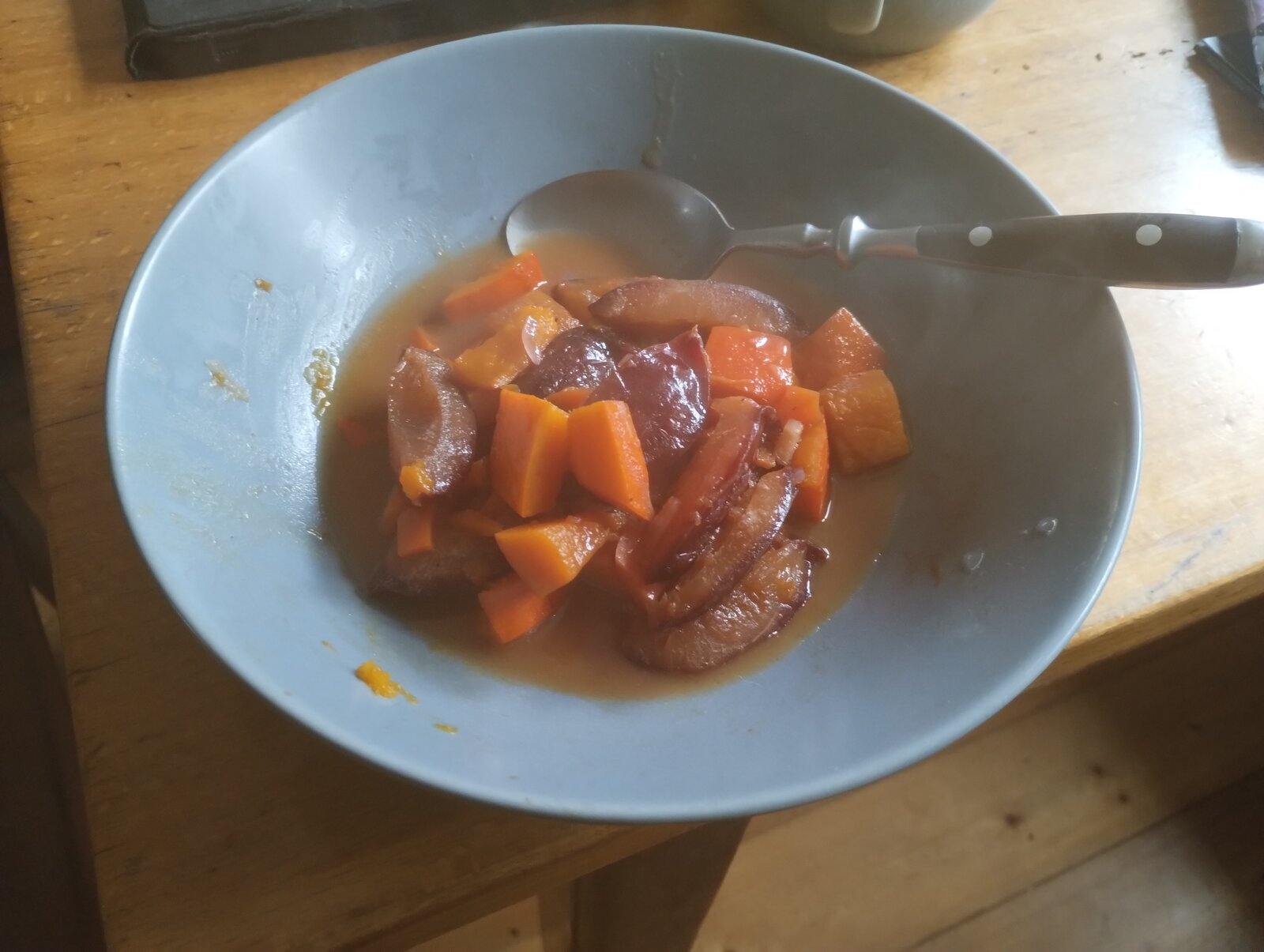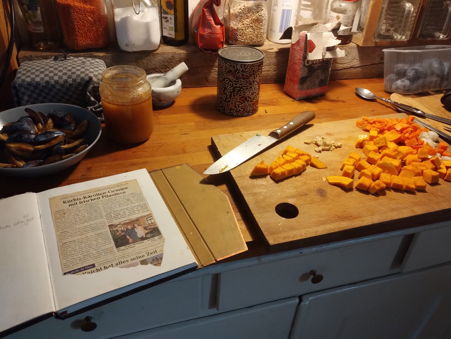 Hokaido sollte weich sein und die Pflaumen heiß aber nicht verkocht.