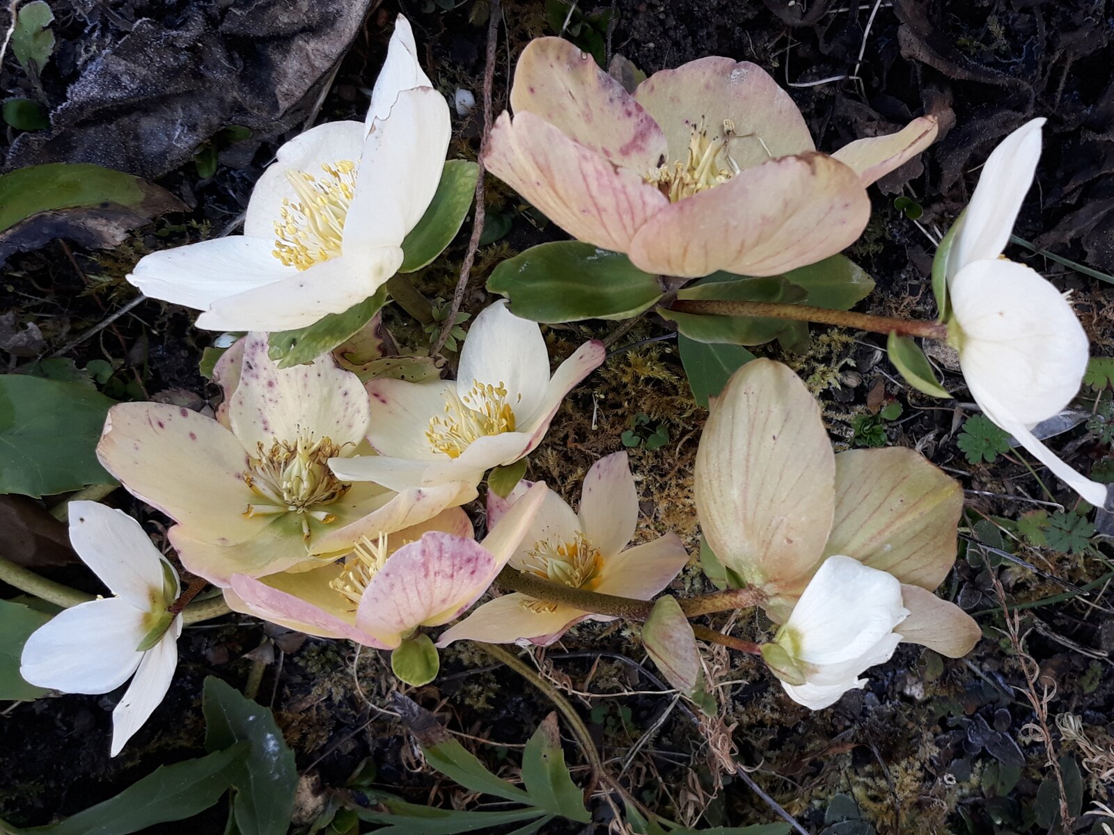 An den Christrosen tummeln sich an warmen Mittagen schon die Honigbienen. Viele dieser Pflanzen zog ich aus den Friedhofscontainern, aber nur wenige wuchsen an und überlebten. Ich versuche es trotzdem immer.