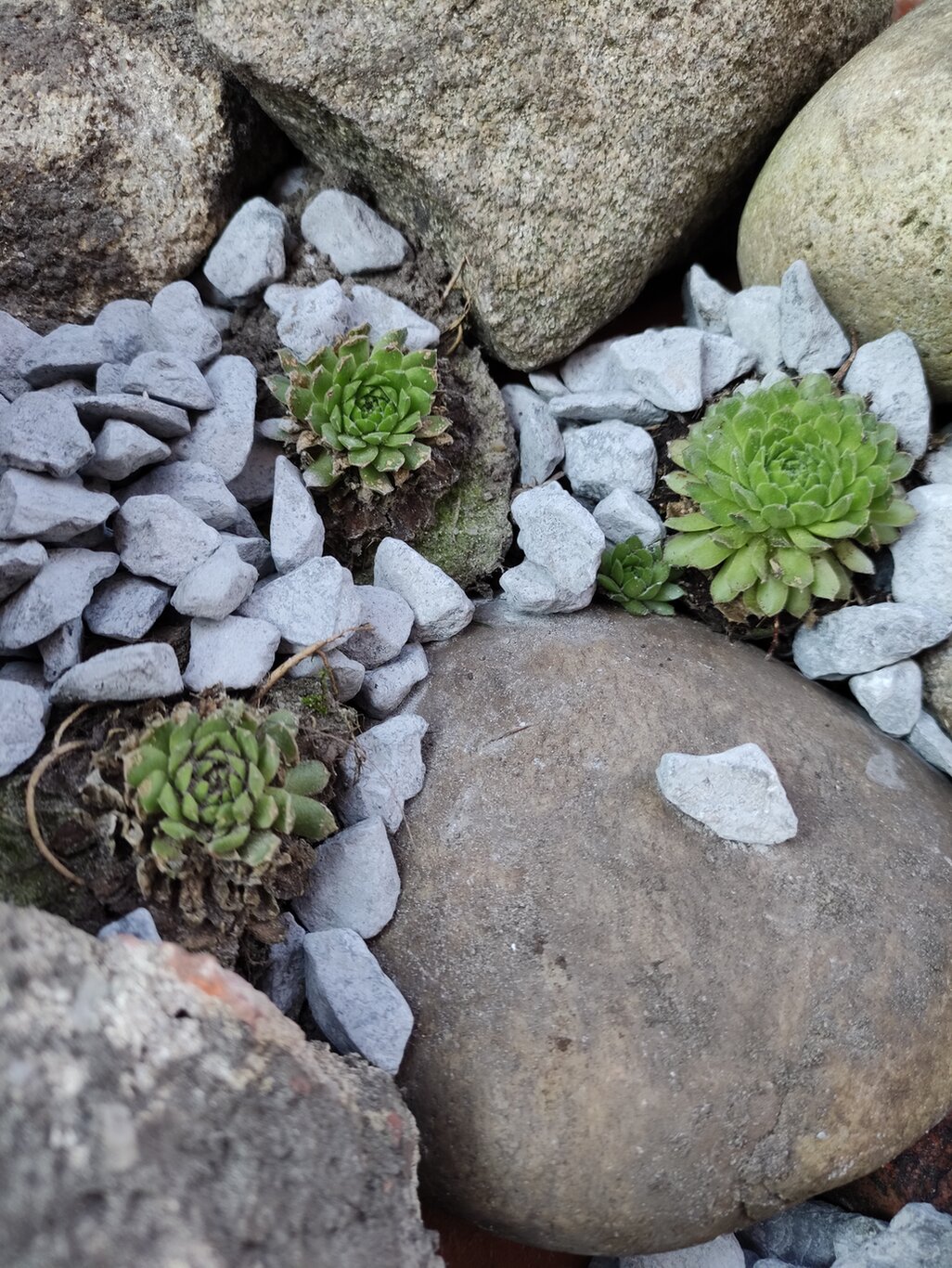 Dann wurde mit Dachziegelschutt eine Drainageschicht in Form von Spalten gelegt. Spalten sind wichtig für ein Alpinum, da die meisten Pflanzen der Gebirge Tiefwurzler sind.