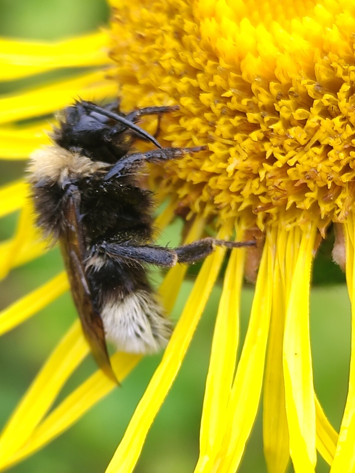 Ich konnte heute morgen auf einer Alantblüte eine Böhmische Kuckuckshummel (Bombus bohemicus) fotografieren.