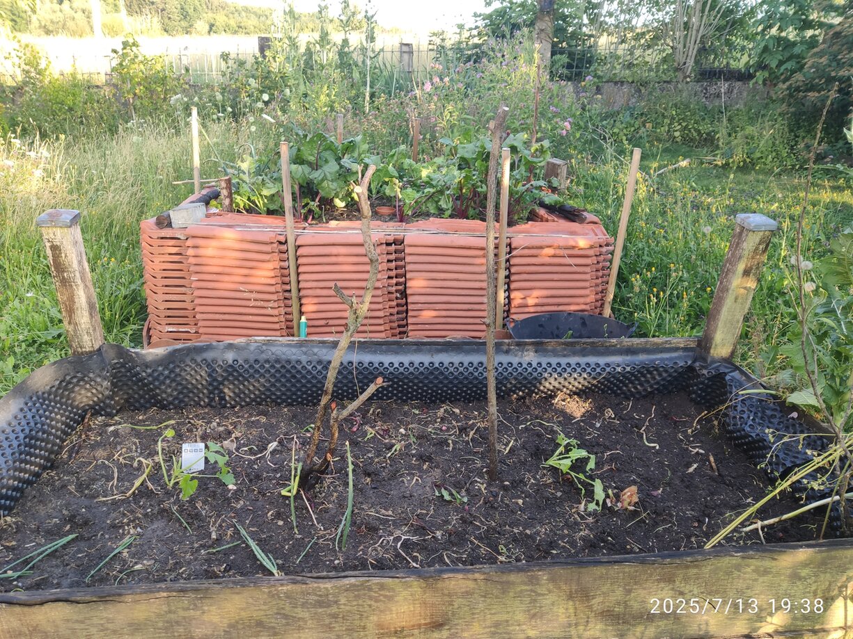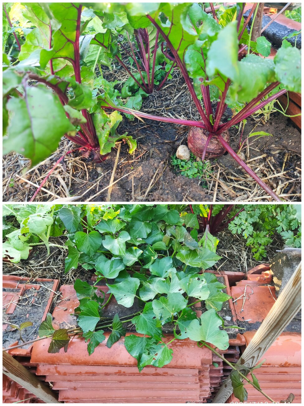 Im Dachpfannen - Beet gedeihen und wachsen Rote-Beete, Petersilien- Wurzel, Dauerwirsing und die zwei Süßkartoffeln