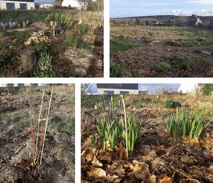 Viele Sträucher wurden gepflanzt (Vorrang hat einheimisch), für Blüten und Obsternte.