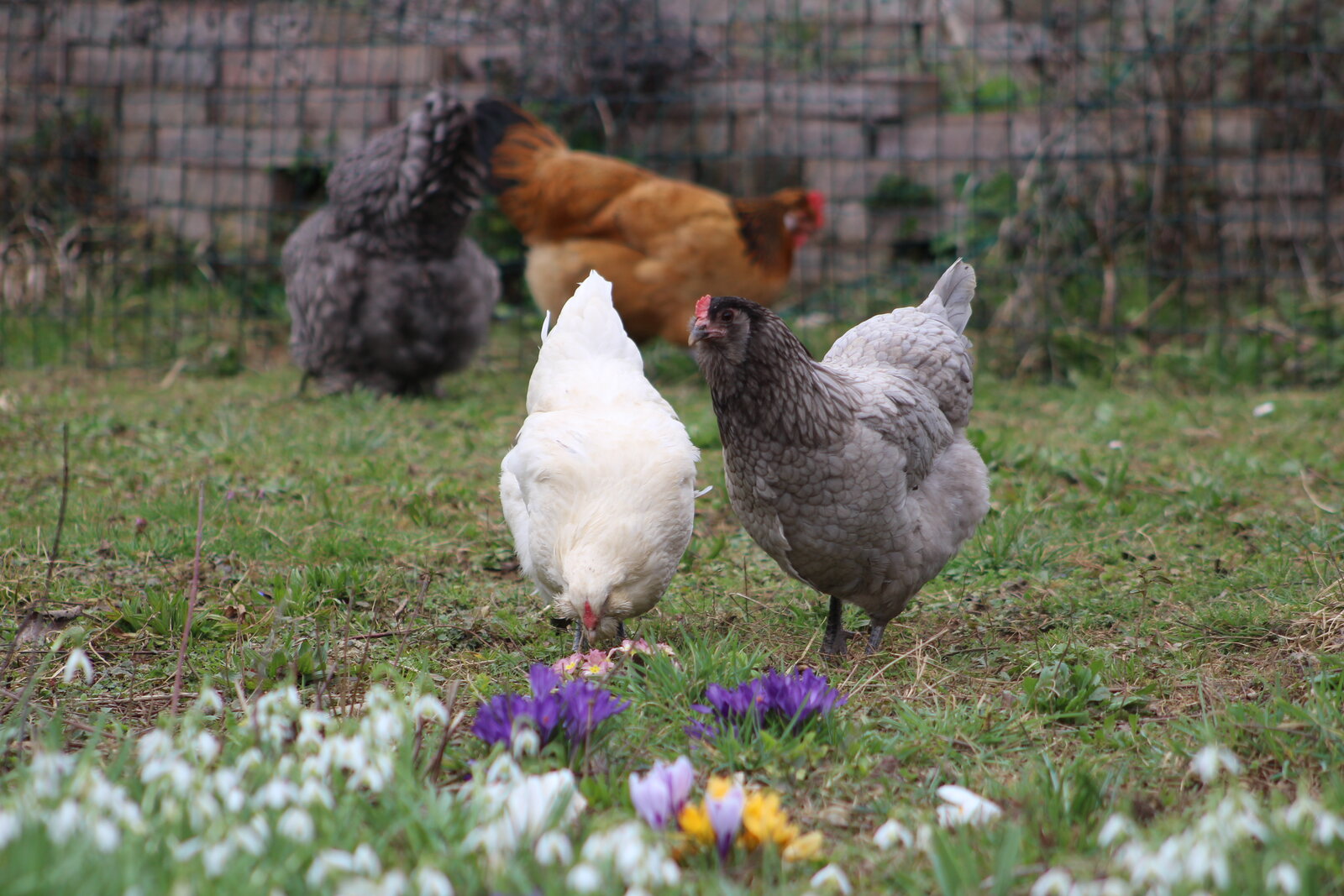 In den letzten Jahren ist sehr viel entstanden: eine Wildsträucherhecke bzw. -gruppen am Rande des Grundstückes, eine Blumenwiese, Kräuterrasen, eine große Ertragszone mit Hochbeeten, Hügelbeet, Schichmulchbeeten, ect., Außerdem gedeihen viele Beeren am Grundstück, einige Obstbäume sowie ein Walnussbaum. Um den Garten vor Schädlingen zu schützen, dürfen aktuell 9 Rassehühner hier wohnen und frei herumlaufen, deren Eier natürlich die besten sind.