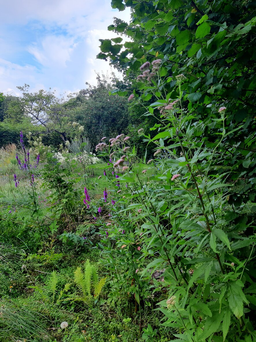 Du hast trotz der klimatischen und feuchten Begebenheiten einen tollen Hortus geschaffen, eine schöne Vielfalt an heimischen Pflanzen in den Magerbeeten. Aufgrund der Begebenheiten habt ihr eben eine " feuchte Streuobst- Magerwiese" , was absolut super gelöst ist. Tolles Foto auch von der Vielfalt! Mega, dass du Hilfe von der NABU bekommst!