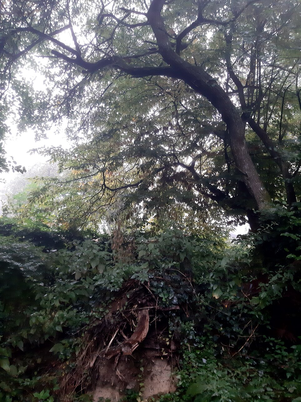 Im hinteren Teil des Grundstücks befindet sich ein "kleines Wäldchen" mit zwei Sal-Weiden, dreimal Spitzahorn, einer Buche und einer Eiche.