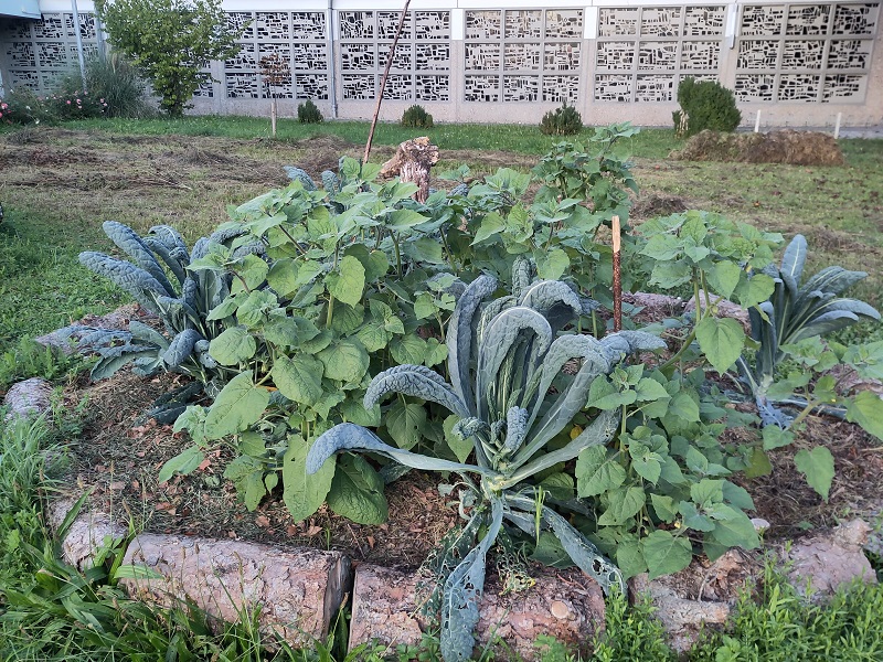 Das Vulkanbeet wird noch aufgefüllt und ausgebaut. Allerdings haben wir es auch gleich genutzt, um noch übrig gebliebene Setzlingen von Physalis und Palmkohl dort einzusetzen. Dieses Beet hat uns sehr überrascht. Auf dem Bild vom Vulkanbeet sind die Setzlinge zu erkennen. Das war am 28.06. Die Füllung war das Material eines Komposthaufen aus Blättern und Rasenschnitt vom Herbst und Frühjahr. Eigentlich sollte ein ausgereifterer Kompost ins Vulkanbeet, aber gerade als wir den ins Vulkanbeet bringen wollten, entdeckten wir eine Mauereidechse auf diesem. Deshalb mussten wir auf den anderen Kompost ausweichen. Die Setzlinge haben sich prächtig entwickelt, gießen mussten wir kaum und obwohl wir so spät dran waren, konnten wir schon Palmkohl ernten und selbst die Physalis setzen Früchte an.