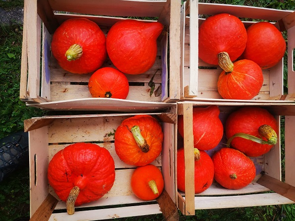 Die obligatorischen Kürbisse gesetzt für das Anfang Oktober anstehende Erntedankfest mit Kürbissuppe für die Mitglieder der Kirchengemeinde aus den Erzeugnissen des Hortus und inzwischen die erste Runde der Ernte auch eingeholt.