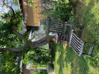 Die ca. 1200qm2 mit etwas altem Obstbaumbestand (Apfel,Birne, Walnuss) gestalten wir nach und nach um. Der Hof wurde kleinbäuerlich/landwirtschaftlich genutzt, mit Hühnern, Schweinen Kartoffelacker und vielen Beerensträuchern.