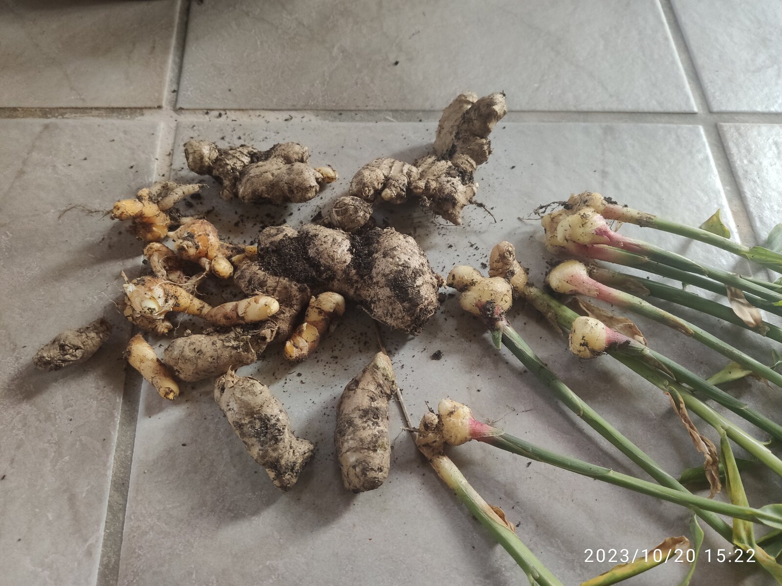 Ich habe gestern ein bisschen vom Ingwer und Curcuma geerntet, weil ich sie zum einkochen brauche. Die Ingwerausbeute hält sich jedoch in Grenzen. Die Pflanzen hätten noch Zeit gebraucht um Knollen zu bilden. Es sind ganz kleine neue Knollenansätze...putzig.