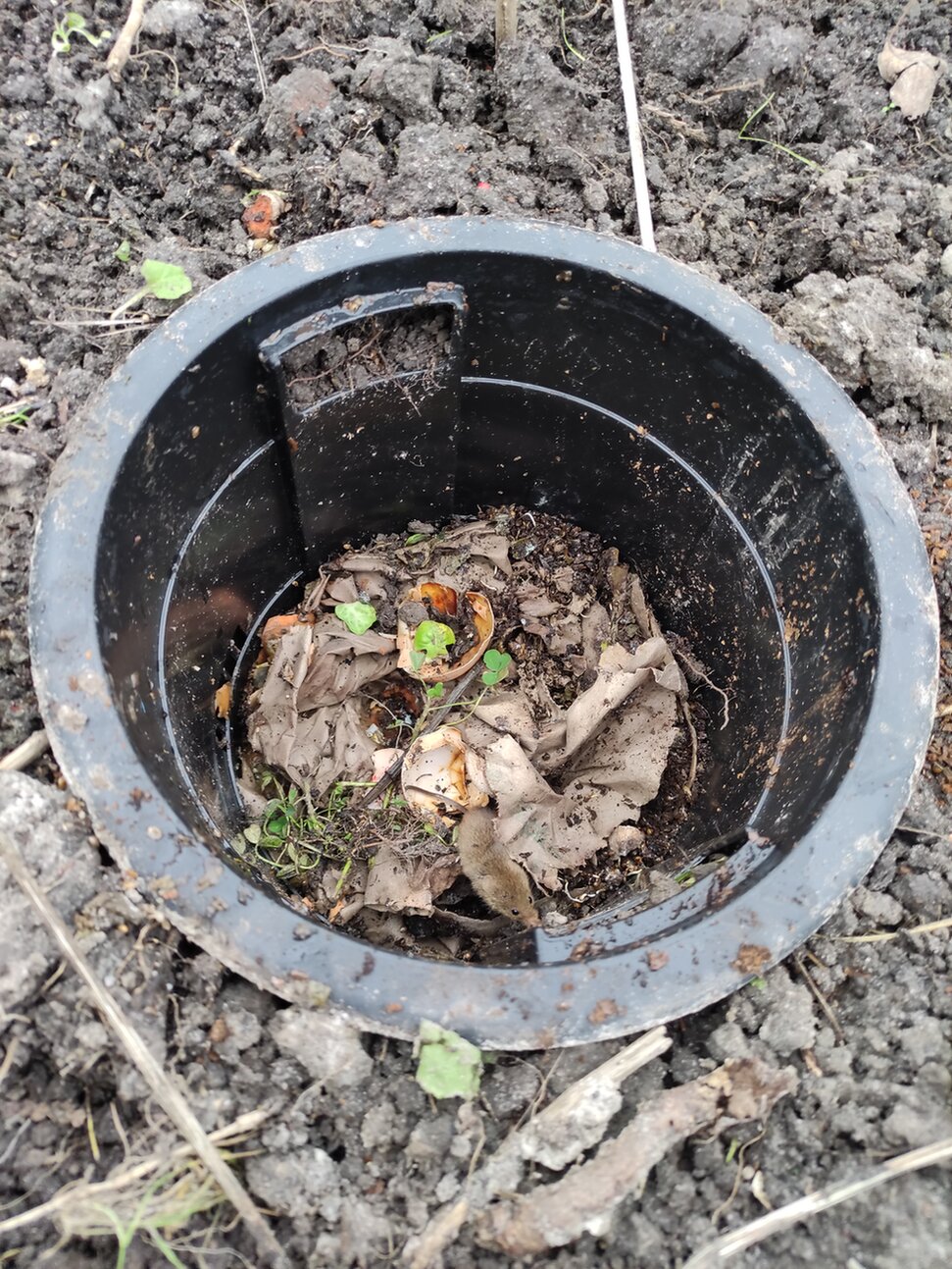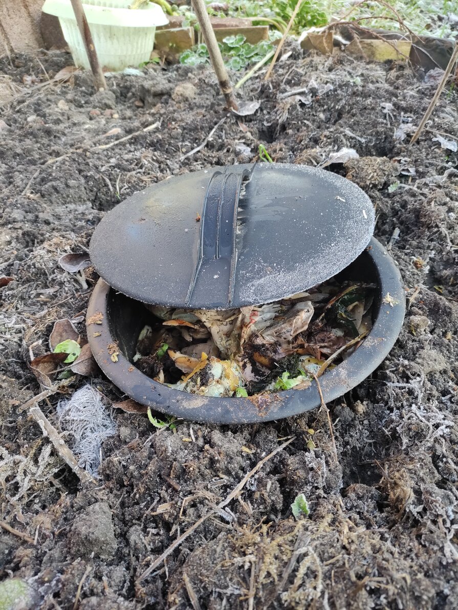 Die Beetkomposter funktionieren auch bei Kälte, so alle zwei Wochen ist der Inhalt auf die Hälfte des Volumens geschrumpft. Ich habe heute wieder nachgefüllt.