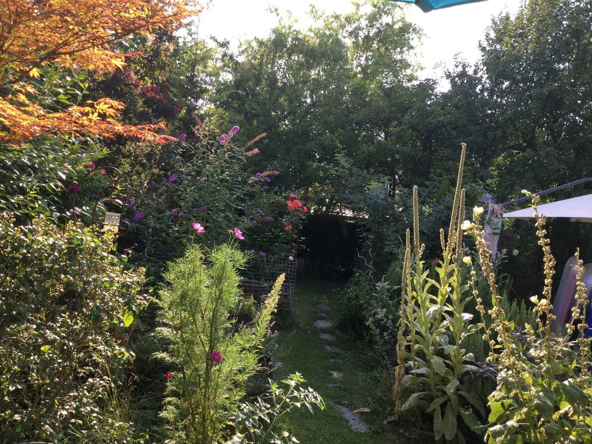 Naturgarten rund um das Haus mit Ertrags- und Pufferzone. Kleiner Hotspot kommt dieses Jahr dazu. Totholzhaufen liegt schon sehr lange. Von Molchen, Grasfröschen und Igeln gerne besucht und natürlich vielen Insekten.