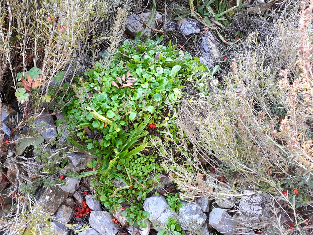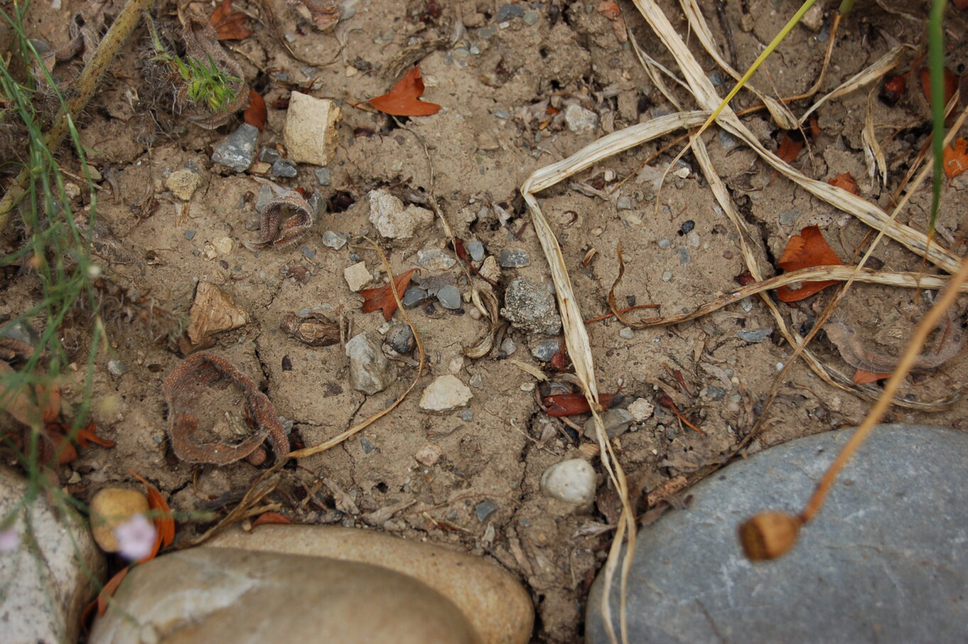 Auf dem Schotterwall (der die Ertragszone vom Sitzplatz trennt) befand sich im Sommer ein großer Ameisenhaufen. Jetzt verwandelte er sich ohne mein Zutun in eine Salatbar.
