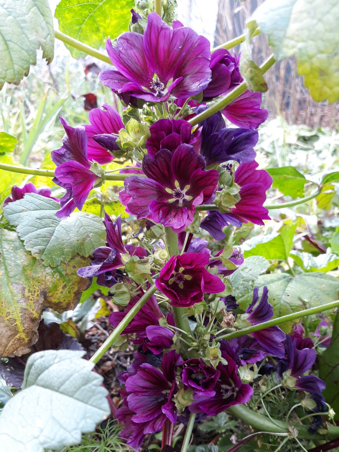 Diese Malve verbreitet sich in der Ertragszone. Vielleicht eine Zuchtform der Wilden Malve oder die Mauretanische? Ich trocknete viele Blüten für die Hausapotheke. Das Bild ist tagesaktuell (November, wir hatten schon Frost).