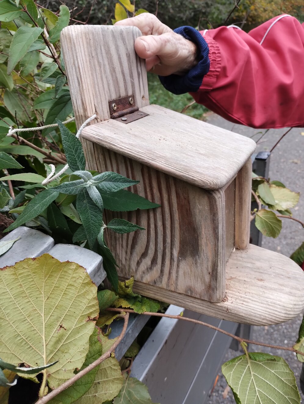 Ich würde etwas unter die Klappe klemmen, damit sie leicht geöffnet ist und die Eichhörnchen sich daran trauen.