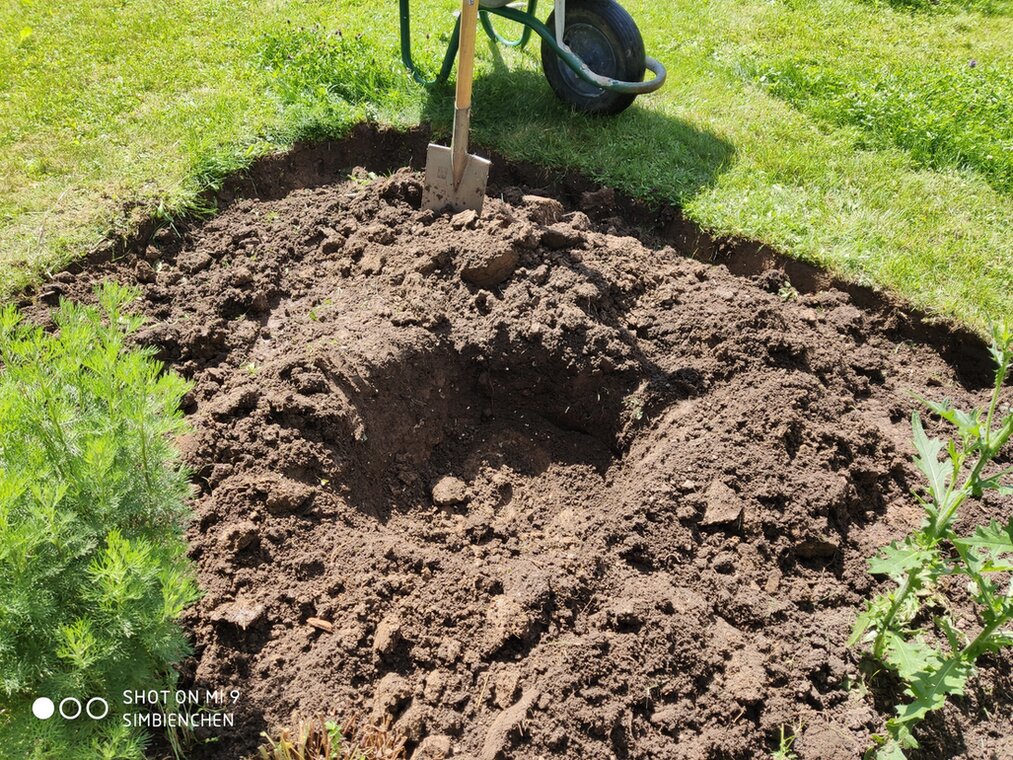 Das Loch dafür wurde ca. 60cm ausgehoben. Im Durchschnitt ca 1m .