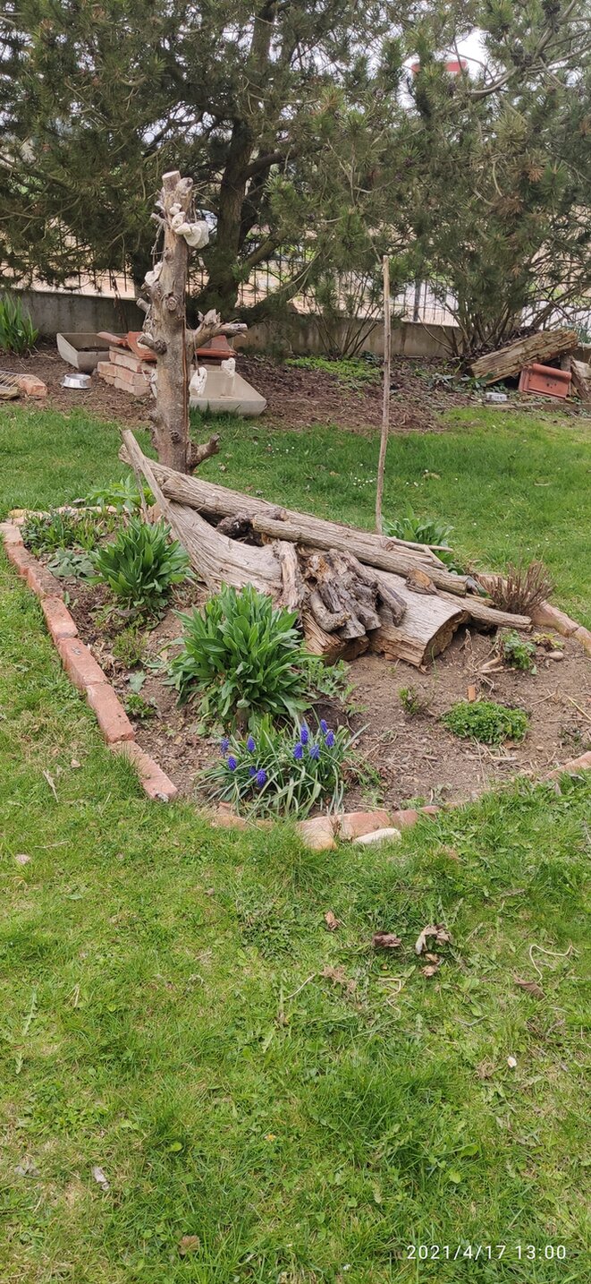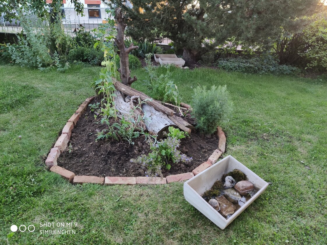 Das Käferkeller -Beet im April 2021 plus Vogeltränke
