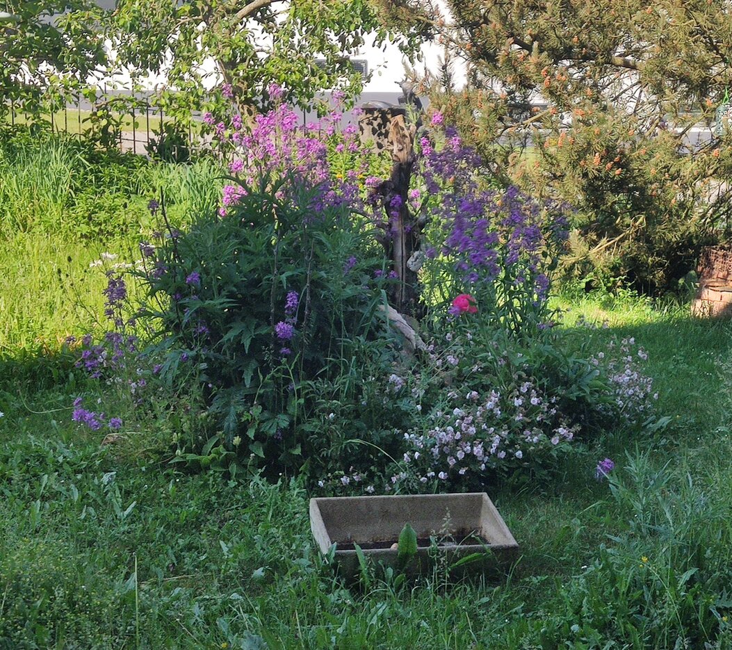 Nachtviolen, Wilde Möhre, Echte Schlüsseblume, Traubenhyazinthen , Acker- Glockenblume, Polster- Glockenblume, Ungefüllte Pfingstrosen, Pimpinelle, Ysop, Herbstastern, Storchschnäbel, Blaue Kugeldistel, Engelwurz, Schlangenknoblauch, ....