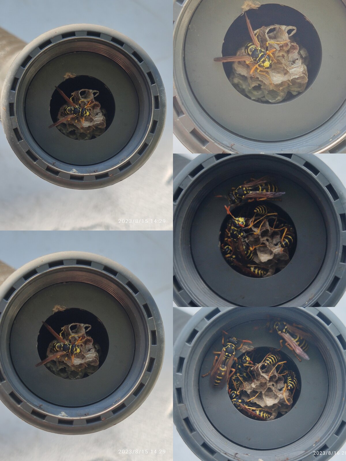 Hier zum Beispiel Haus- Feldwespen in einem offenen Schlauchstück