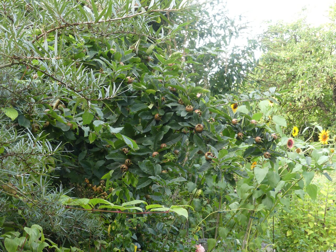 Pufferzone mit Sanddorn, Mispel und Sonnenblumen
