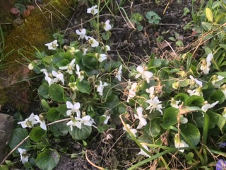 Bemooster Stein in meiner kleinen Blühfläche, dahinter ein wildes Veilchen... einfach nur herrlich. Wie kann man Moose immerzu vernichten wollen als konventioneller Gärtner....?? Sie sind Wunderwerke der Natur.