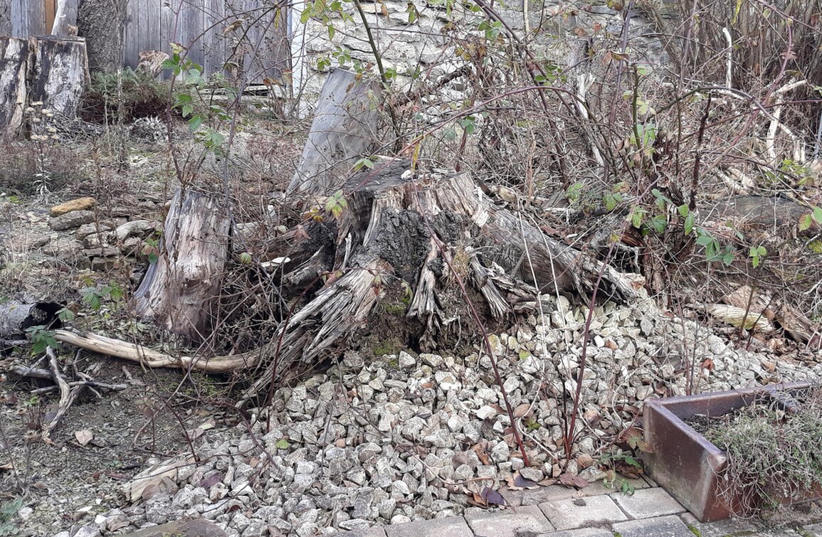 Die Stumpery schrumpft jetzt immer rascher zusammen. Manche morschen Wurzeln werden von Vögeln und anderen Tierchen kurzerhand zerfleddert. Es muss unbedingt Nachschub her!