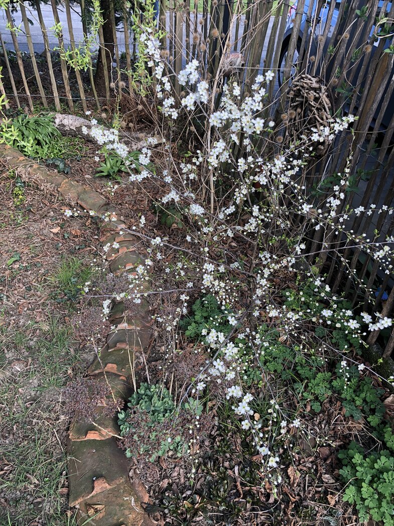 Sie scheint den Umzug gut überstanden zu haben. Sie treibt ganz hübsche Blüten und sieht zufrieden aus. Ich erwarte jetzt noch ein paar Frühlingsblüher. Die Traubenhyazinthe und kleine Tulpen sind schon da. Krokusse sind schon durch. Die Dichternarzisse hat bisher nur die Blätter ausgestreckt. Ich bin gespannt.