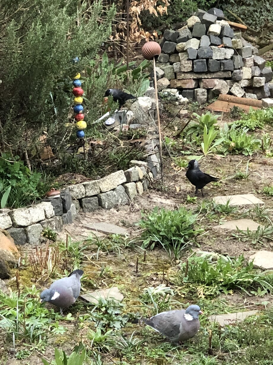 Heute hatte meine Landebahn Besuch. Taubenpärchen und die Dohlen waren auf der Suche nach Sämereien. Schlaue Vögel. :vogel
