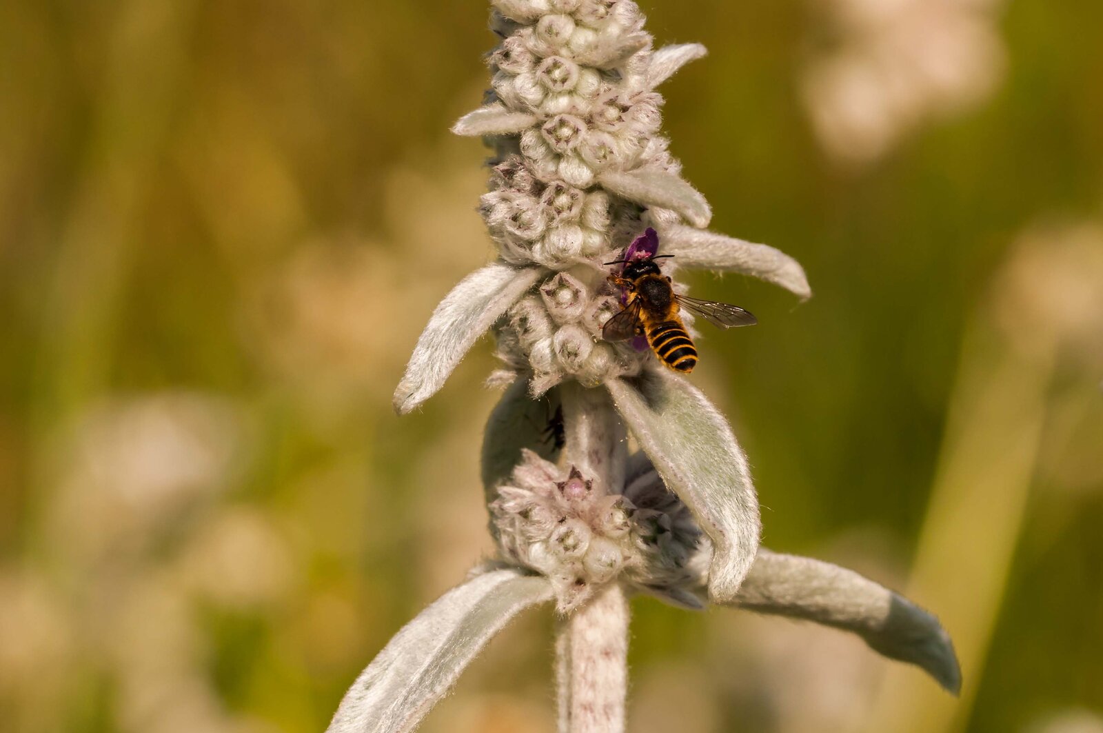 An den Blüten ist selten was los, aber Frauenmäntel sind auch Selbstbestäuber. Es gibt aber Pollen, den sich glaub ich Käfer und Kleininsekten holen. Interessant ist Frauenmantel aber für verschiedene Spanner und Spinner