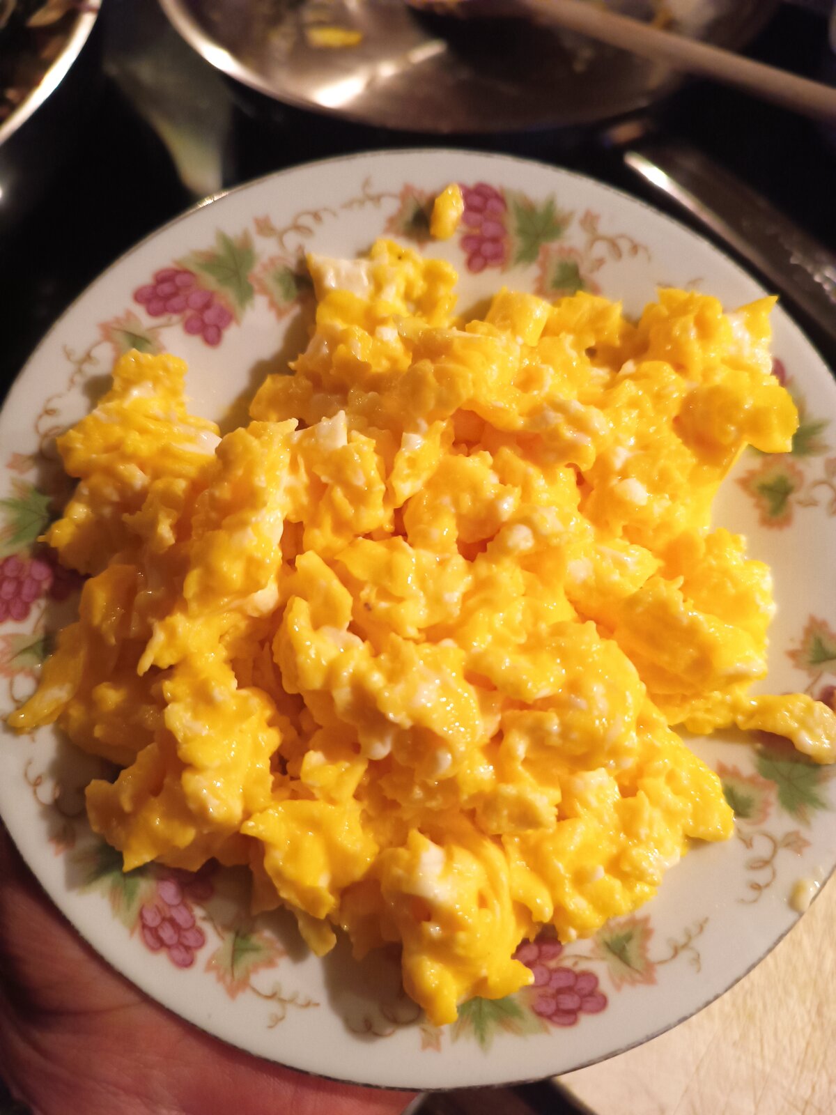 Wenn ich den Herd sowieso einmal an habe, wird die Restwärme für Rührei genutzt. Schön schlapperig ohne jegliche Gewürze. Geht ratzfatz und die Stachelritter nehmen es dankend an.