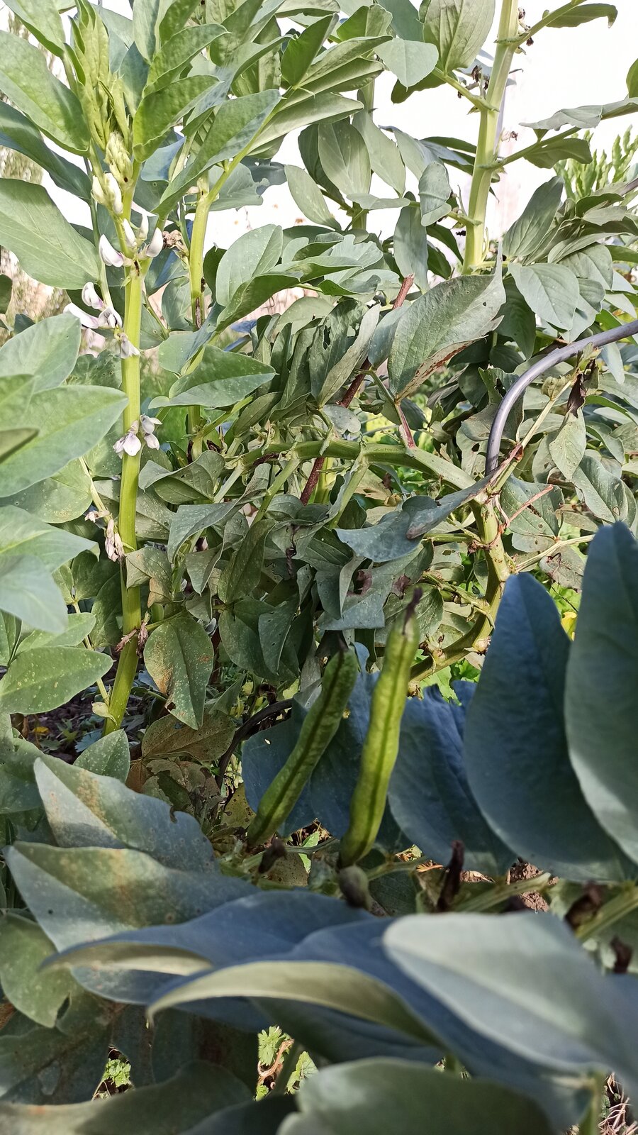 Die Acker-, dicke oder Saubohnen wie sie bei uns heißen, stehen bei mir im Momment in drei Stadien. Pflanzen, die beteits getragen haben, aber noch blühten. Der Frost hat zwar gebissen, sie aber nicht plattgemacht. Sie schlagen wieder aus und sind dann sehr früh.