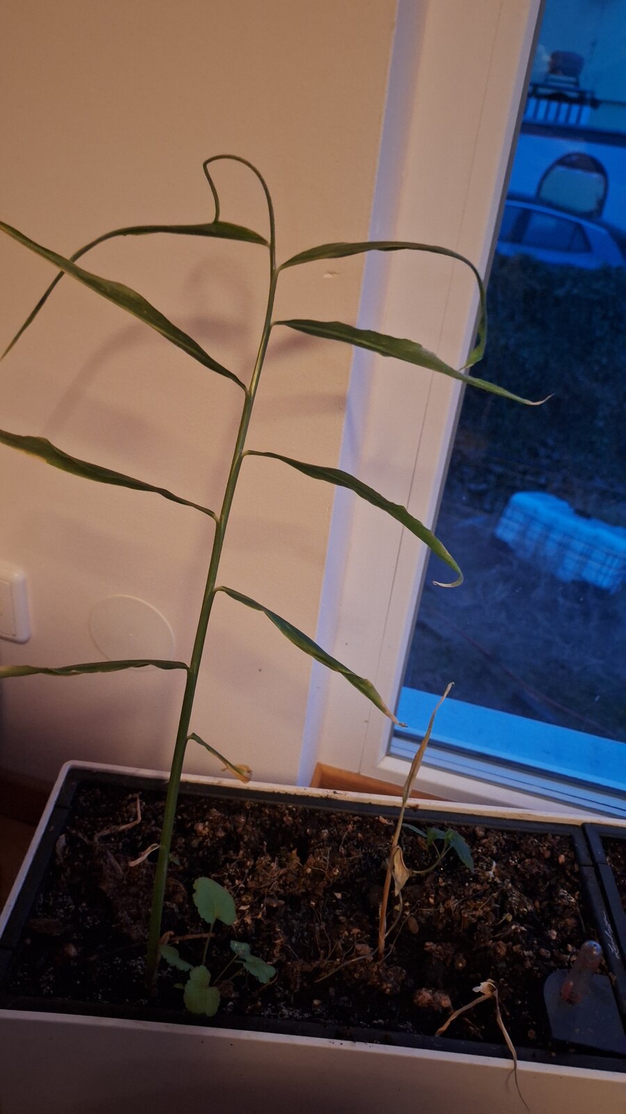 Die anderen Aussaaten ( Auberginen, Chili, Paprika) machen sich auch gut an der Fensterbank.