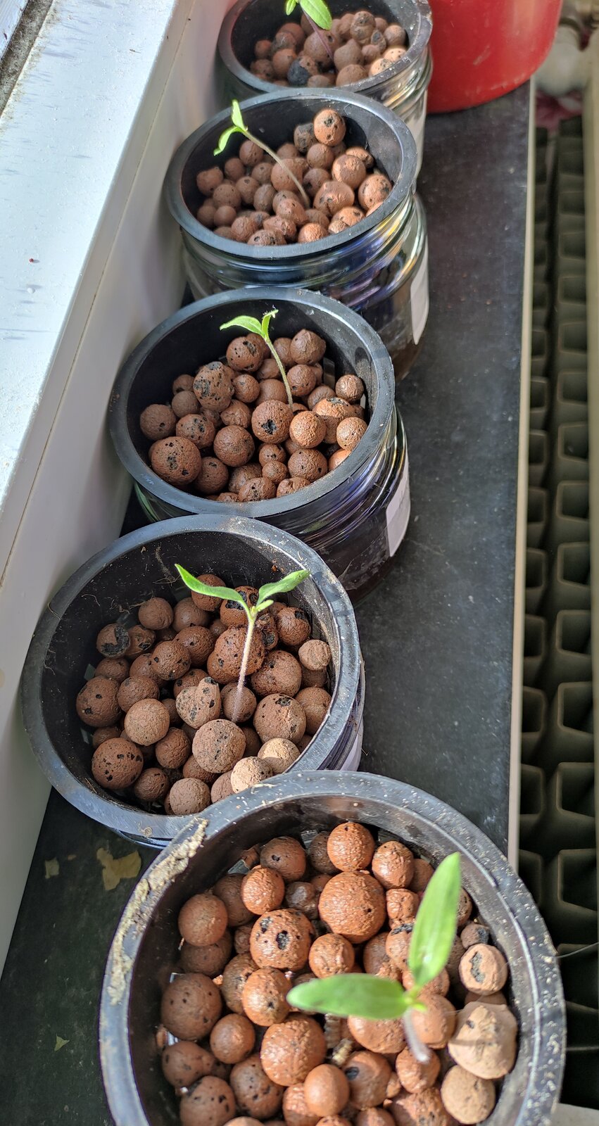 Die Tomaten die schon gekeimt waren sind in Hydro-Töpfe umgezogen.