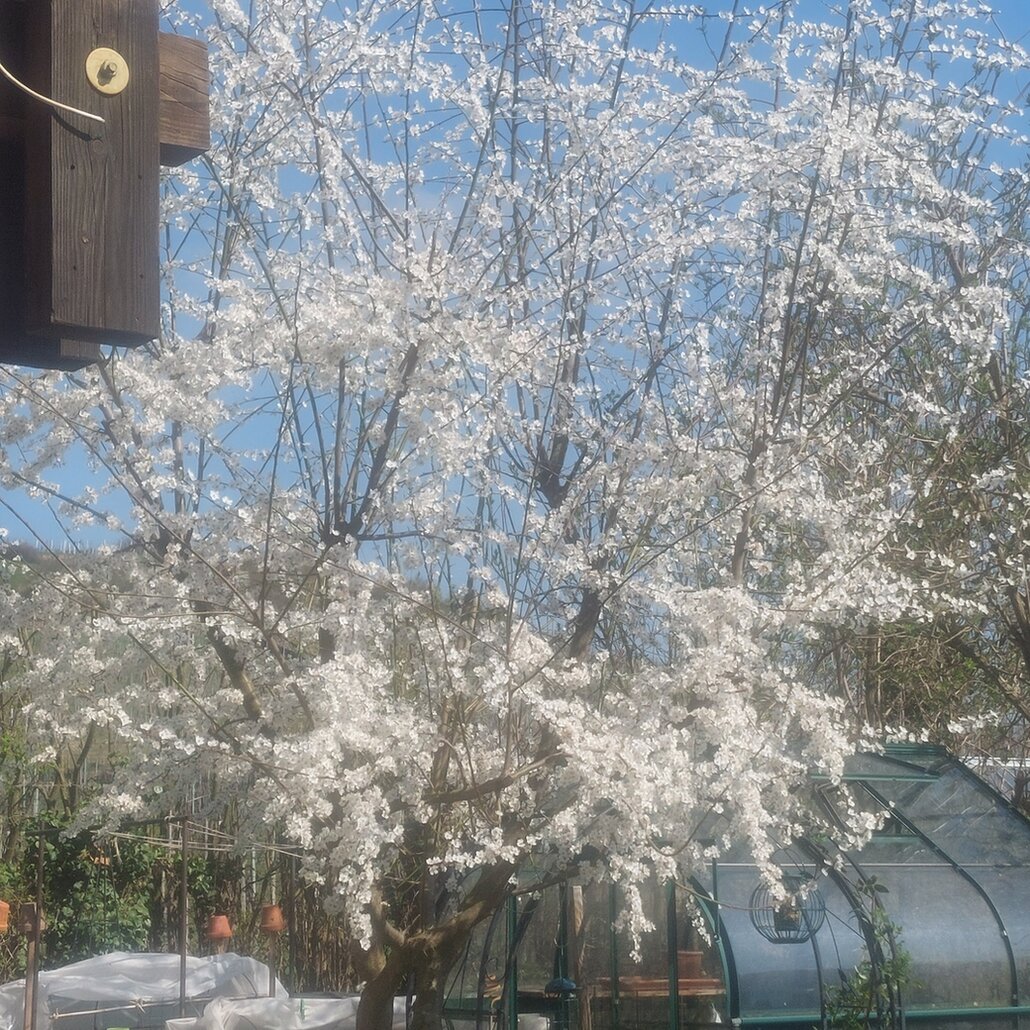 Eine meiner Kirschpflaumen fängt an zu blühen.