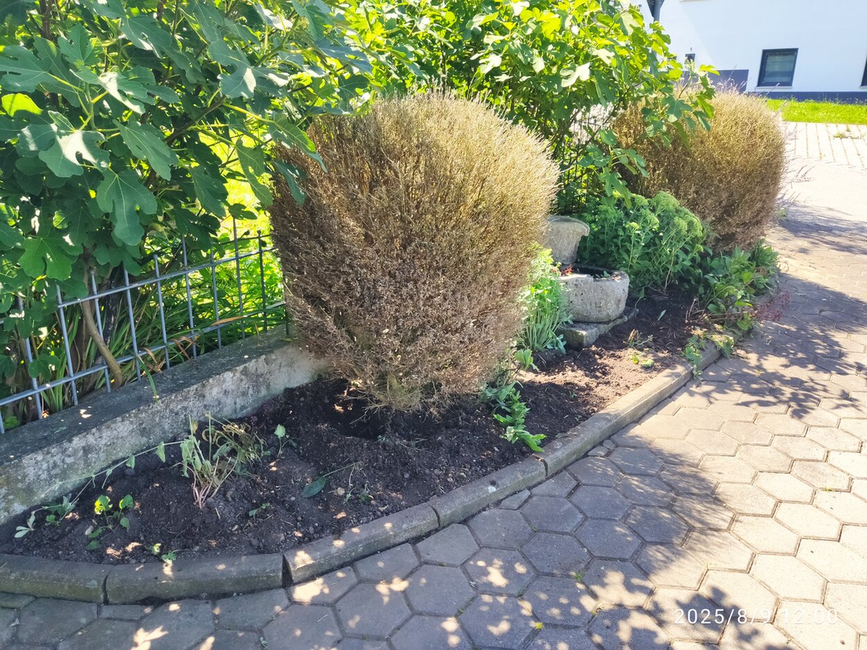 Es wird erst im Herbst aktuell, dieses Beet mit den Buchskugeln neu zu gestalten. Ich mache mir bis dahin auch Gedanken und gucke mal, was Naturadb dazu sagt.