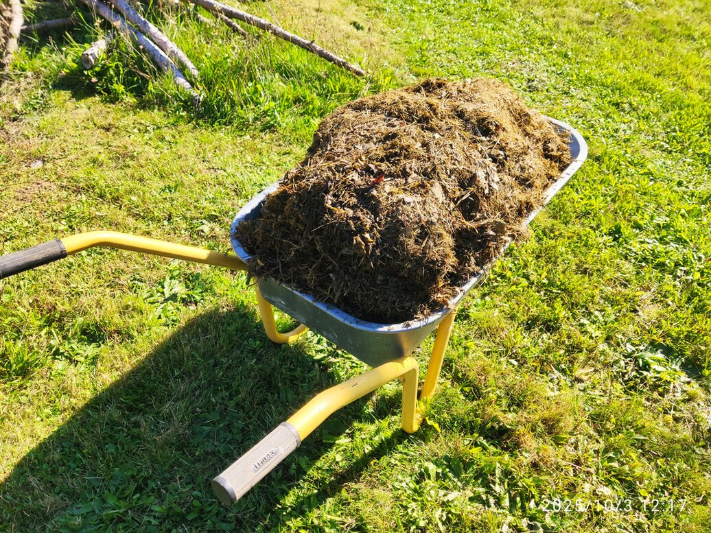 Die abgeernteten, frei gewordenen Flächen der Ertragszone wollen gemulcht werden. Zum Glück habe ich dieses Jahr viel Grassilage fermentieren können und habe heute schon einiges davon verteilt. Mein alter Thermokomposter, der schon zig mal mit uns umgezogen ist, gibt nun langsam den Geist auf. Ich möchte aber eigentlich nicht mehr darauf verzichten, mit und durch Heißrotte noch eine Variante der Kompostherstellung nutzen zu können. Ein neuer muss her.