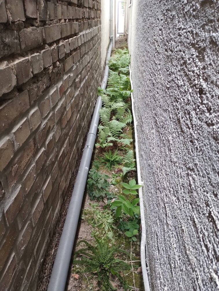 Zwischen unserer Scheune und Nachbars Haus gibt es einen (hier so genannten) Schlupf.
