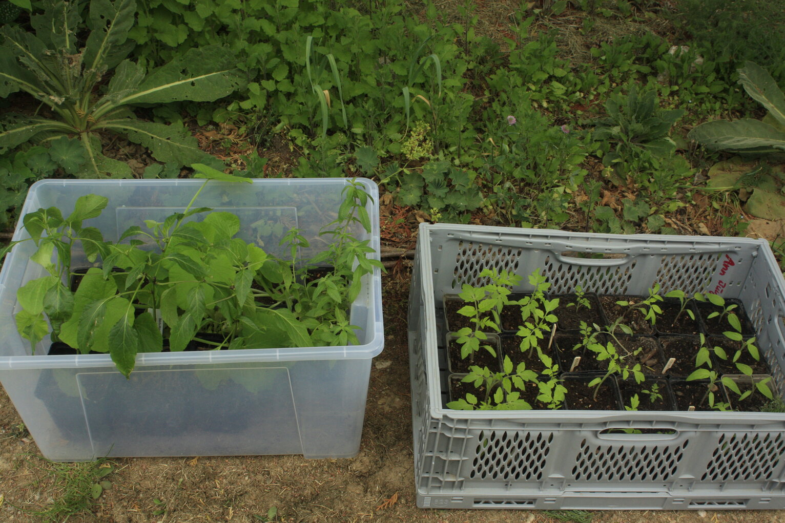 Es war Umzugszeit: fünf Sorten Tomaten in 24 Pflänzchen; vier Sorten Kürbisse und Chili.