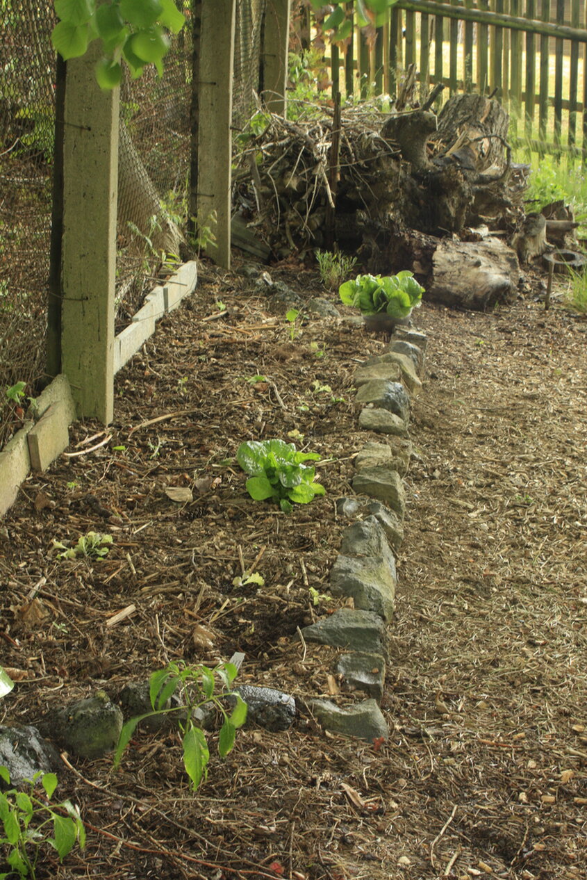 In die ehemalige Stelle der Totholzhecke zogen die Kürbisse ein, damit sie bewachsen ist, bis die Wacholder und Aussaaten soweit sind. Ich fand doch eine Hand voll Seifenkrautpflänzchen von Somnia.