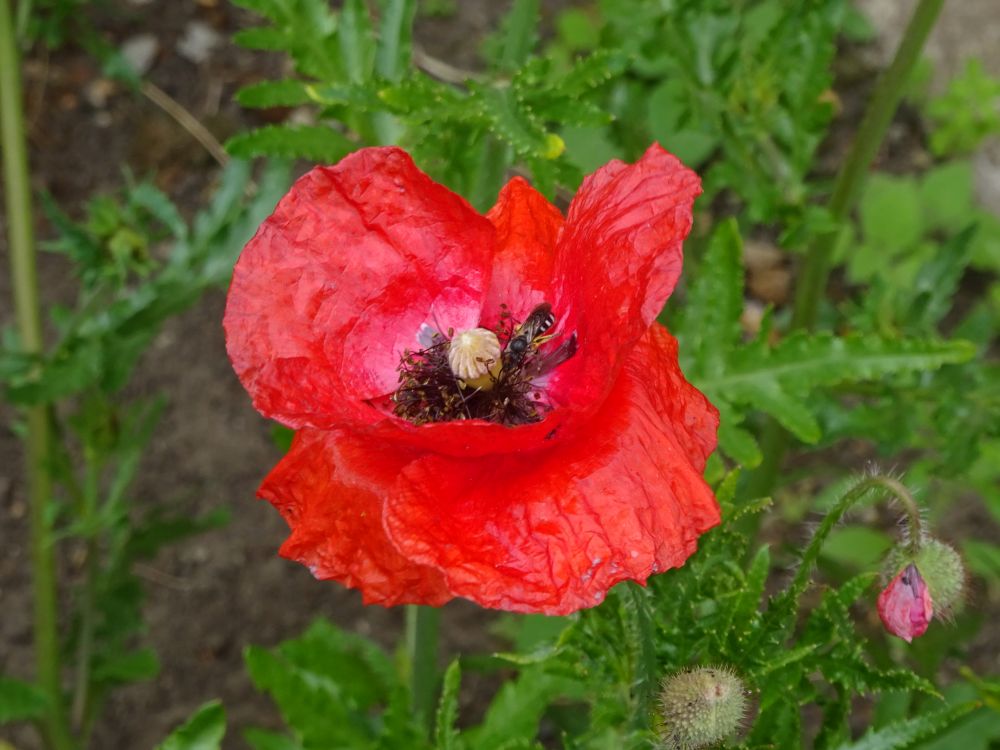 Mohn auf einem Beet, auf dem letztes Jahr noch Kirschlorbeer stand und für das wir noch keinen konkreten Plan haben. Wo er herkommt? Ich weiß es nicht.