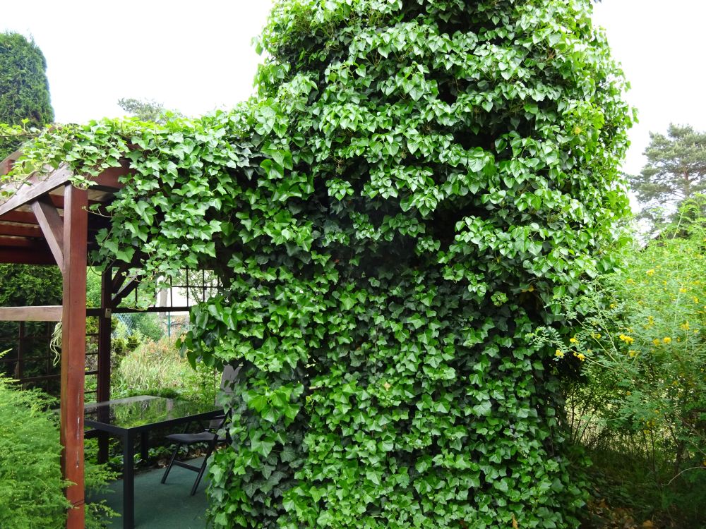 Efeu, jedes Jahr mehr und üppiger. Wir hoffen, dass der Stamm durchhält. Das Ensemble ist in den immer heißeren Sommern ein guter Hitzeschutz.