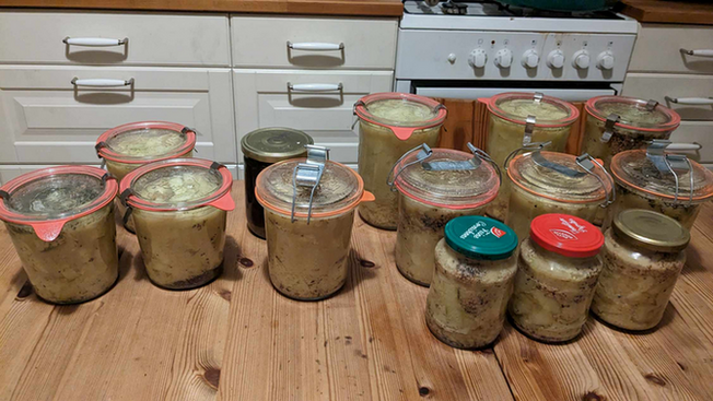 Bei den Deckeln von Twist-Off Gläsern haben wir auch Schwund, aber da wir die ja über unseren normalen Verbrauch immer wieder neu bekommen, ist das jetzt nicht so gravierend. Neu holen wir eigentlich nur noch Einweckgläser - da muß man ab und an den Gummi ersetzen.anja28 hat geschrieben: Sa 11. Nov 2023, 08:23 Nachdem ich schon etliche super leckere Gläser mit sauren Gurken verzehrt habe fällt mir auf, dass sie Deckel der Gläser sehr leiden.Die werde ich wohl nicht wieder verwenden können.