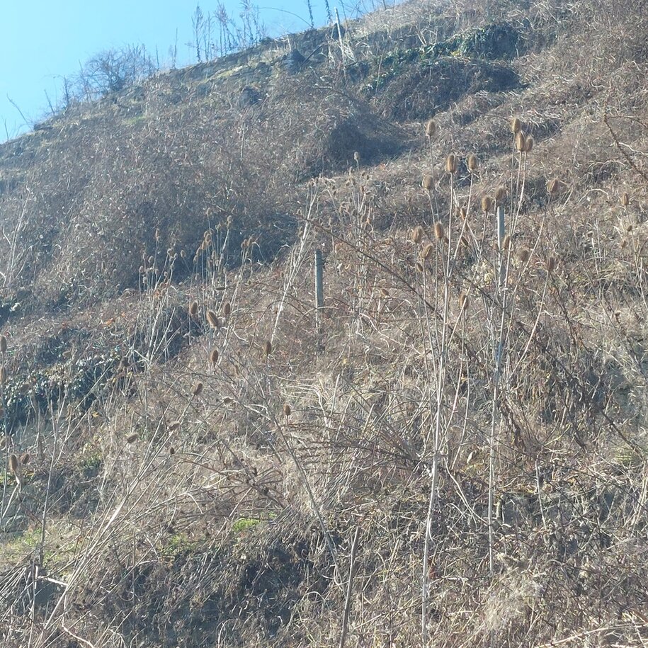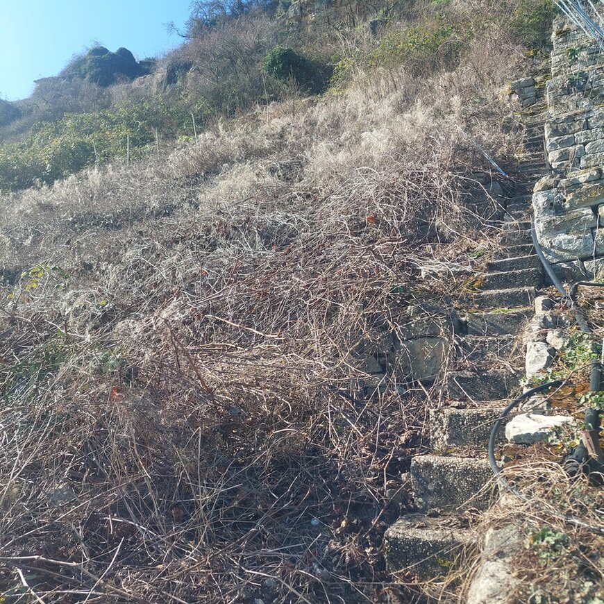 So entwickeln sich Steillagenweinberge wenn sie weder genutzt noch gepflegt werden. Diese waren jetzt 10 Jahre sich selbst überlassen...für die Eidechsen idealer Lebensraum, für andere Tiere oft eine tödliche Falle, da oft noch die komplette Drahtanlage steht und nicht entfernt wurde.