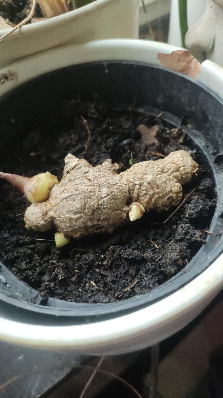 Anfang Dezember ein Rhizomstück eingetopft.