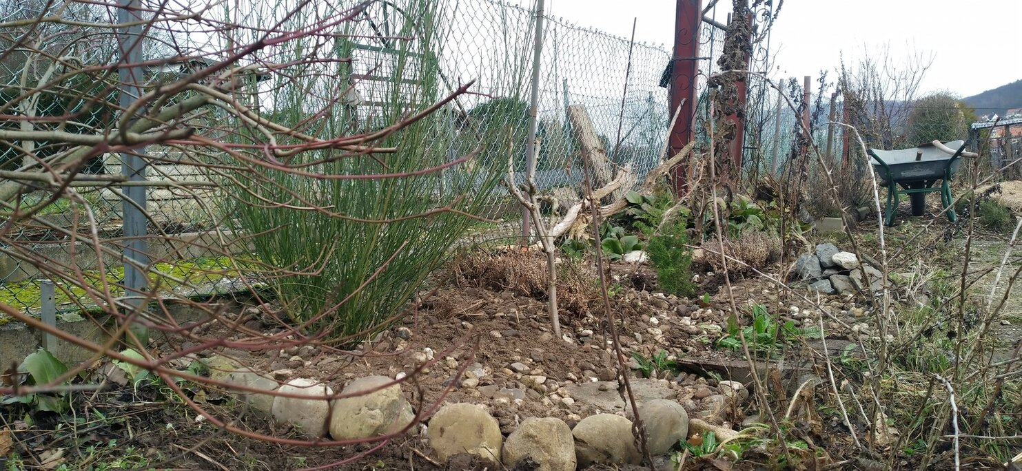 Ich habe für diesen Februar als erstes Ziel, die Walnuss von der Treppe umzusetzen und die Plane rauszunehmen, damit die Obstwiese nach dem Quecketotmulchen endlich wieder Luft bekommt. Mit der Plane müssen natürlich die letzten Queckenwurzeln rausgenommen werden.